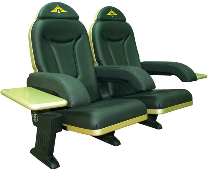 Пластиковые сиденья для гостевого обслуживания и сиденья категории VIP с элементами мягких накладок для сиденья и спинки.